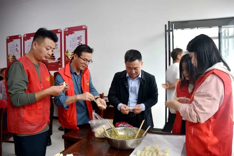 活动现场暖意融融,处处是忙碌而温馨的景象。有的挽起袖子和面擀皮,手法娴熟,有的仔细调配馅料,兼顾老人口味偏好,有的围坐在一起包饺子,指尖翻飞间,一个个饱满的饺子整齐排列。老人们或坐在一旁帮忙择菜,或与大家拉着家常,讲述生活趣事,欢声笑语在敬老院的庭院里不断回荡,俨然一幅“大家庭团圆”的生动画卷。