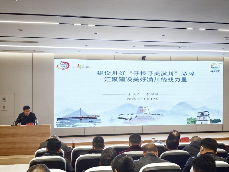 随后,县委统战部四级调研员李学海以《建好用好"寻根寻美潢川"品牌,汇聚建设美好潢川统战力量》为主题授课,立足潢川"84211"文化标识体系,详细讲解黄姓祖地、古黄国历史等资源优势。