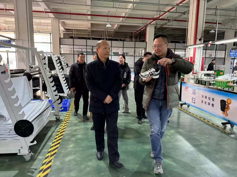 刘隽一行实地走访了广昱鞋业生产车间,现场了解惠台利民政策措施落实、涉台园区规划和台企生产经营等情况。
