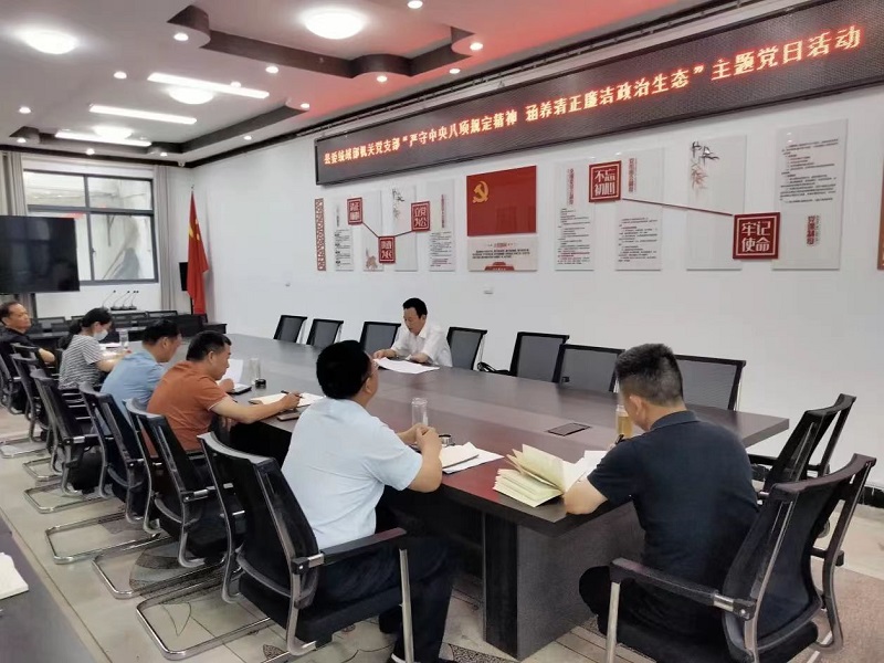 6月25日,潢川县委统战部机关党支部组织全体党员、入党积极分子开展了“严守中央八项规定精神 涵养清正廉洁政治生态”主题党日活动。县委统战部常务副部长、民宗局局长、机关支部书记邵勇参加了活动。