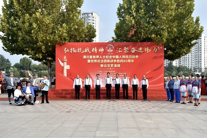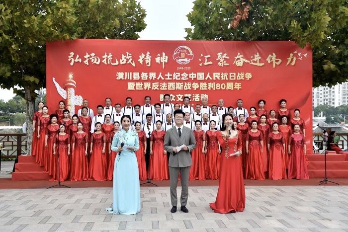 县少数民族界带来的朗诵《挺起全民族抗战的潢川脊梁》格外引人关注。演员以潢川本地抗战历史为蓝本,讲述了各族群众不分你我、携手抗敌的真实事迹。
